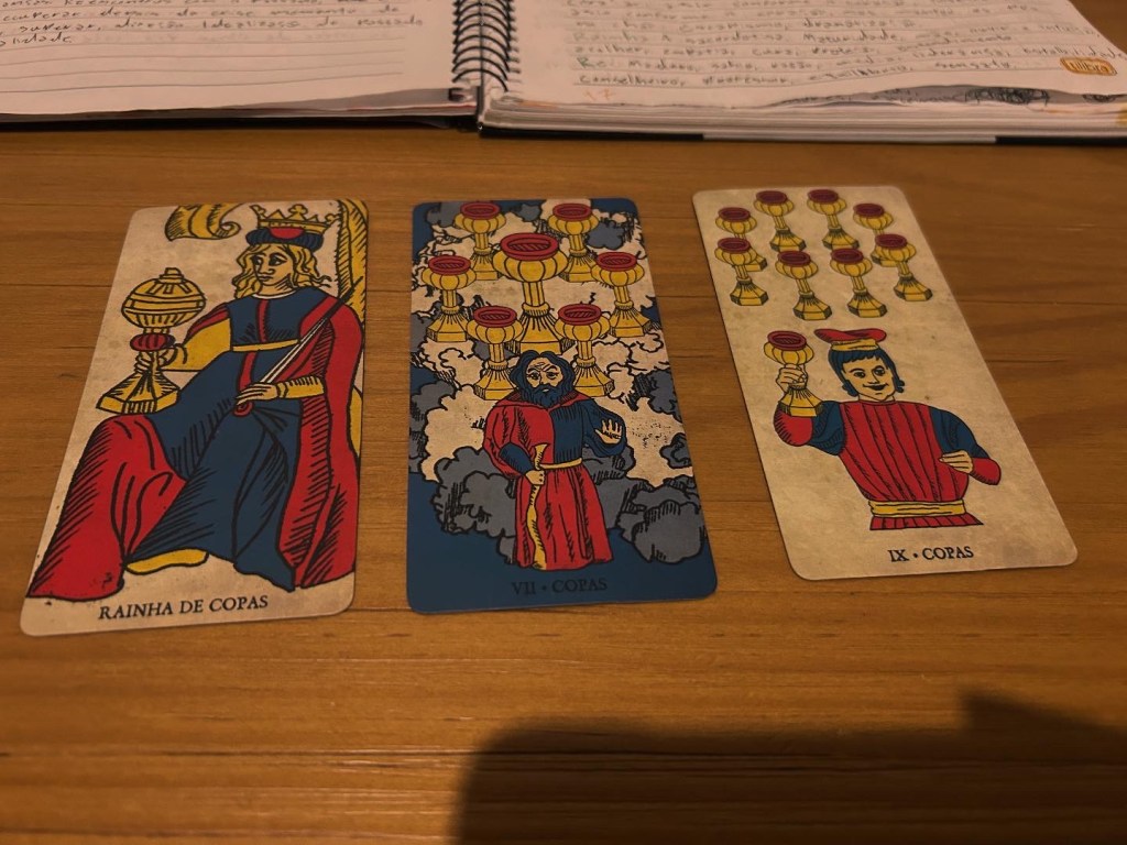 O Tarot por ser terapêutico, começa me afetando muito com os estudos e cartas antes mesmo de qualquer jogo. Por se tratar de estudos relacionados com psicologia, eu tive uma certa jornada de autoconhecimento, me entendendo através da simbologia das cartas.